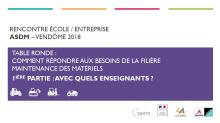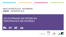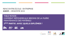 Ces deux journées de rencontres, qui se sont tenues les 15 et 16 novembre 2018, ont rassemblé les entreprises et les écoles de la filière de formation en maintenance des matériels. Cette rencontre a été organisée par l'ASDM en partenariat avec le ministère de l’éducation nationale et de la jeunesse et le Lycée des métiers André Ampère à Vendôme, qui nous a agréablement accueillis.