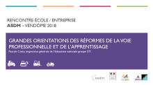 PRÉSENTATION DE LA FILIÈRE - GRANDES ORIENTATIONS DES RÉFORMES DE LA VOIE PROFESSIONNELLE ET DE L’APPRENTISSAGE